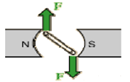 2. Jika kawat yang membawa arus dibengkokkan menjadi sebuah lingkaran atau loop maka kedua sisi loop yaitu pada sudut kanan medan magnet akan mendapatkan gaya pada arah yang berlawanan.