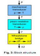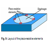 Penyimpangan difragma dirasakan oleh empat elemen tegangan piezoresistif yang dibuat melibatkan bahan doping ke dalam area silikon, dimana terdapat tegangan terbesar. Metode pelibatan bahan doping tersebut adalah dengan difusi pada temperatur tinggi, yang merupakan hasil dari empat strain-gauge yang dihubungkan ke dalam rangkain jembatan defleksi secara normal.