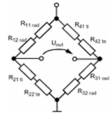 Untuk jembatan yang mengandung empat resistor aktif tipe-p, kombinasi yang terbaik adalah dua resistor radial dan dua resistor tangensial dalam arah [110] , semuanya terletak pada pinggiran diafragma.